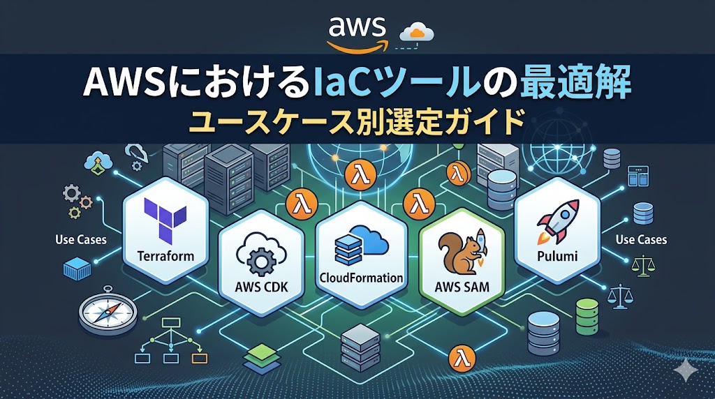 Terraform、AWS CDK、CloudFormation、AWS SAM、Pulumi——5つのツールはそれぞれ異なる設計思想を持つ。「どれが最強か」という問いは意味をなさない。チームの技術スタック、組織の成熟度、ワークロードの特性によって最適解は変わる。本稿ではアーキテクト視点で、ユースケース別の判断基準を整理する。